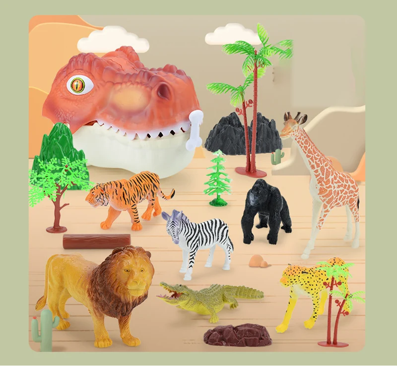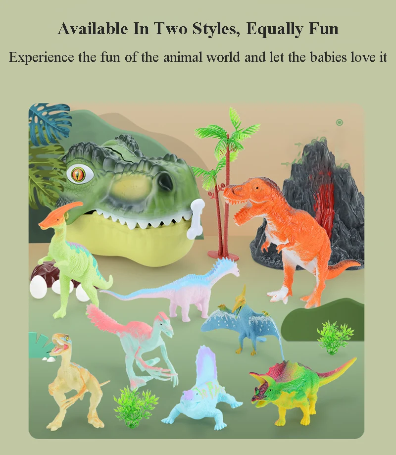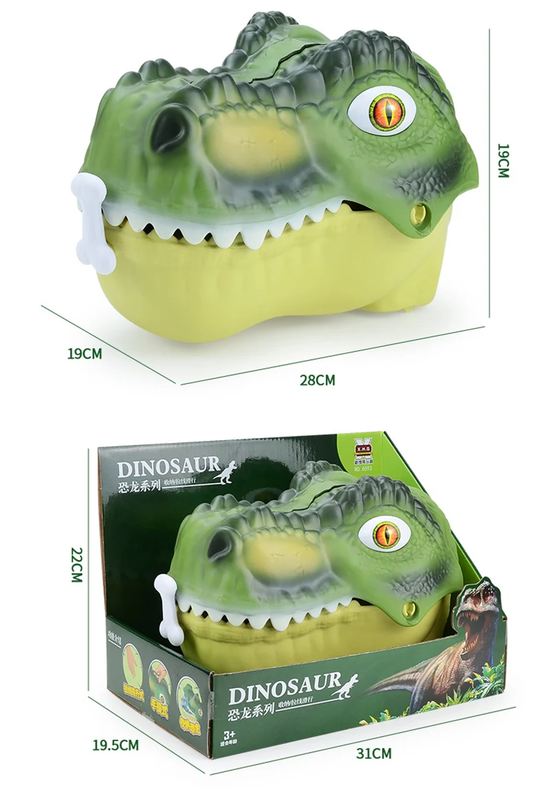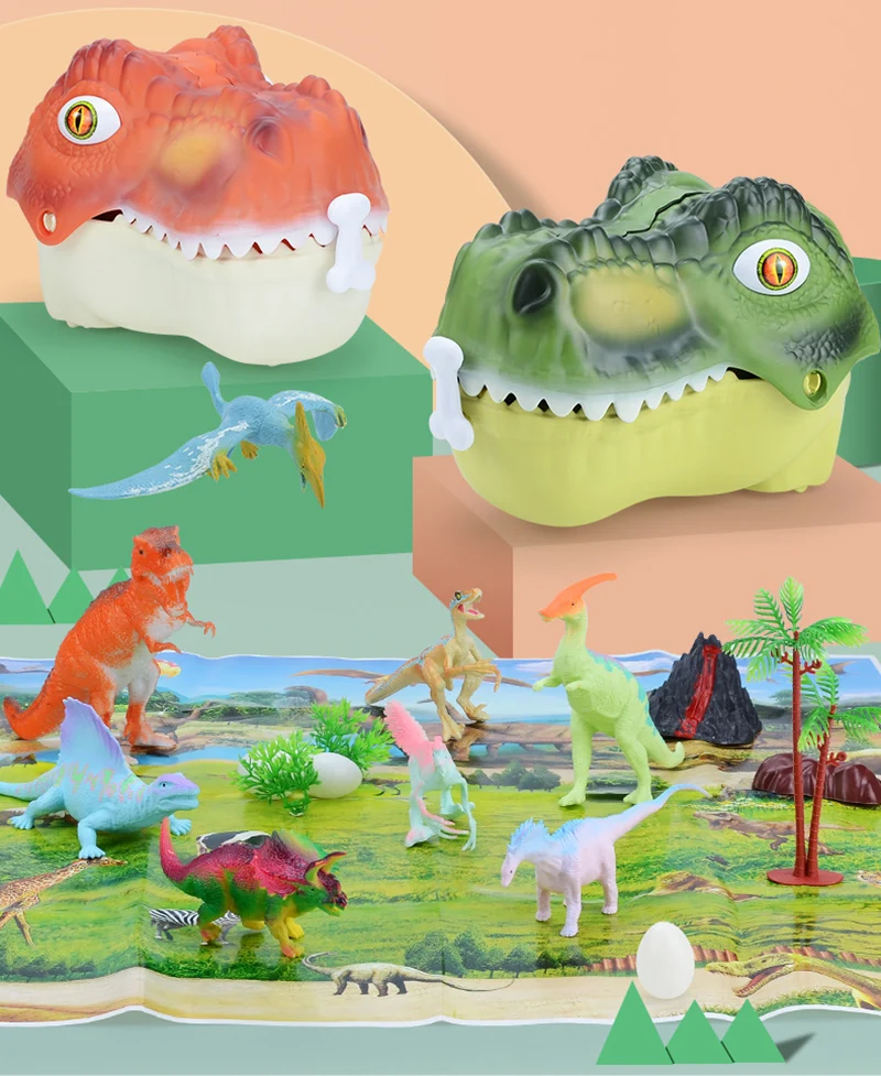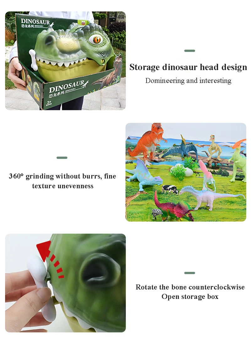 The dinosaur head storage box is not only a playable Rex's head that toddlers can use for role-playing games but also a large storage box.The dinosaur head organizer is easy to organize, with wheels on the bottom and a handle on the top, it is lightweight and portable, kids can take it to the garden, beach, school and any outdoor environment to play.Dinosaur playset with forest map will stimulate your child's imagination by teaching your child to cooperate with friends, simulate real situation experience, and let them have creative entertainment in their own room.The Dinosaur Playset with Storage Box is the perfect gift for kids to help them learn about different dinosaurs.The Mini Dinosaur Figure Set is made of plastic material, which is sturdy, durable and can be played for a long time.Specifications:Material:PlasticColor:Green/RedPackage Includes: 1 Set Dinosaur Storage BoxNote: Due to the light and screen setting difference, the item's color may be slightly different from the pictures.Please allow slight dimension difference due to different manual measurement.Red:Green A:Green B:
