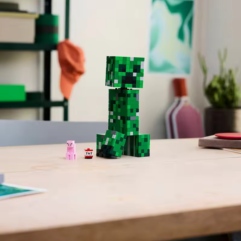 This Creeper children's puzzle building block toy is a wonderful combination of Minecraft IP and puzzle assembly, specially designed for children who love pixel style games. It contains 665 building block particles, with the game's iconic "Creeper" as the core shape, restoring its green background with gray pixel texture and classic block structure. During the assembly process, children need to search for patterns between green and gray blocks of different shades to exercise spatial cognition and hand eye coordination skills.The building blocks are made of environmentally friendly ABS material, with smooth edges and no burrs, ensuring the safety of children during assembly. The splicing design is tight and has high fault tolerance, neither too loose to cause the shape to collapse, nor too tight to make it difficult for children to operate. The finished product has a moderate height, and the head and limbs that are afraid of coolies can be slightly swayed through the joint structure, meeting children's interactive expectations for "movable toys". It can also become a personalized decoration for the theme of "Minecraft" when placed on the desktop.As a gift, its green themed packaging box is printed with game scenes, making it highly recognizable. From a cognitive perspective, it can cultivate children's patience and logical thinking; From an emotional perspective, it can also awaken the emotional resonance of Minecraft players. It is a high-quality children's gift that integrates "puzzle, collection, and interaction", allowing children to shuttle through the pixel world during assembly, opening up the dual fun of creativity and exploration.